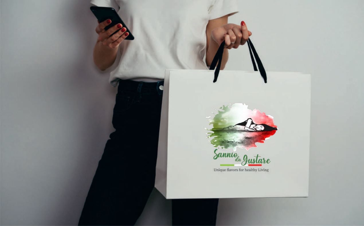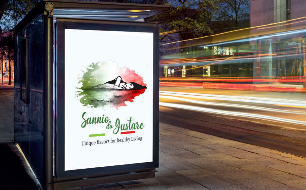 Nel concept del logotipo “GUSTASANNIO” si è pensato di unire al naming lo script in inglese e una sottile bandiera italiana in quanto i prodotti saranno destinati anche ai mercati esteri.