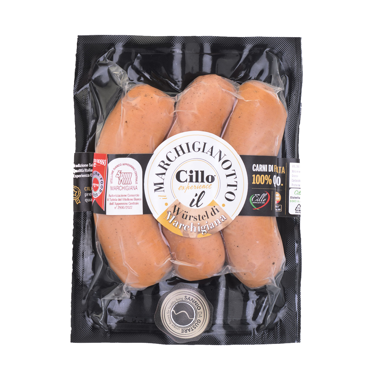Il Wurstel Marchigianotto è realizzato con carni di prima scelta di razza Marchigiana e di Suino Chiaro del Sannio affumicato in maniera naturale. Il Wurstel Marchigianotto è eletto da Gambero Rosso il N°1 in Italia per rapporto qualità-prezzo e selezionato quale prodotto TOP ITALIAN FOOD 2022.