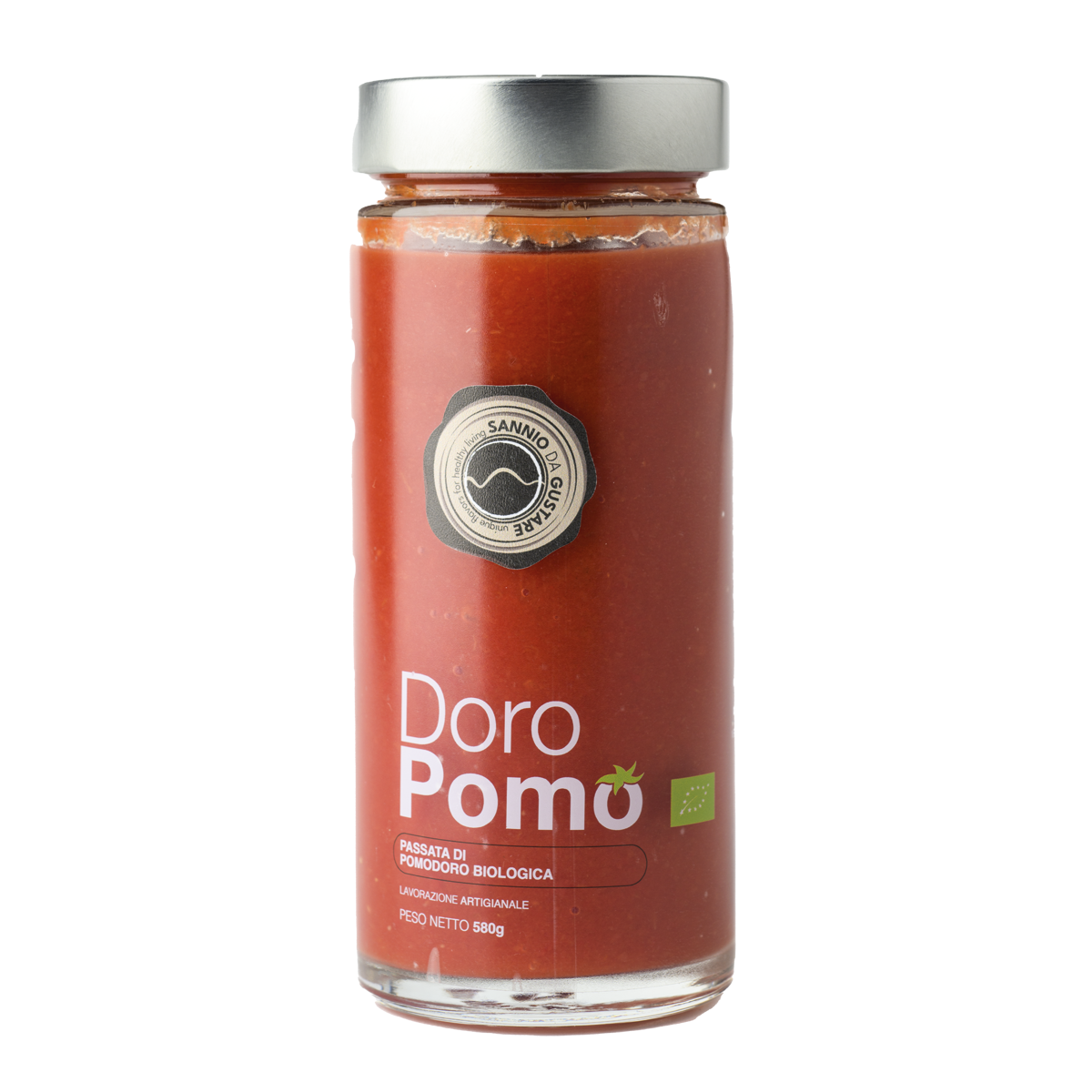 Doropomo, Passata di pomodoro biologico, non una semplice passata di pomodoro. Dalla purezza dei pomodori coltivati sulle colline incontaminate di Cercemaggiore, attraverso procedimenti rigorosamente biologici, ecco nascere Doropomo. Con il suo packaging fiero ed il colore intenso, mantiene al gusto tutte le aspettative che nascono dopo essersene innamorati a prima vista. Ci sono pomodori e poi c’è Doropomo: stravolgente nel nome e al primo assaggio. Disponibile nel formato da 580 grammi.
