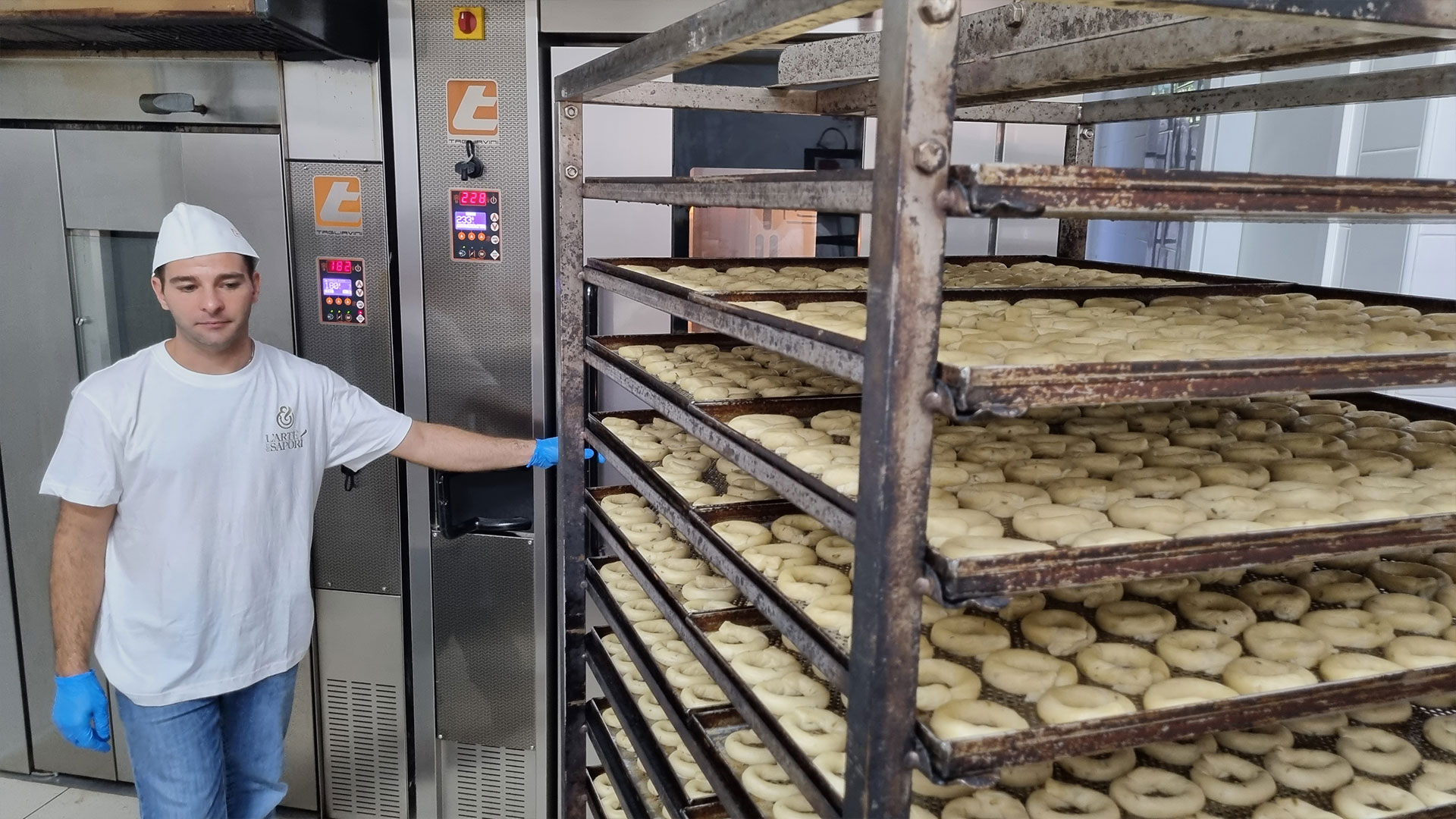 Croccanti e gustosi, ottenuti dall’impasto di pochi ingredienti, semplici e genuini lavorati sino a raggiungere la giusta elasticità. Seguendo la ricetta tradizionale, dai ritagli di pasta, viene data la forma tipica ai taralli. La lavorazione artigianale è caratterizzata dalla chiusura degli anelli di pasta e dal processo di bollitura in acqua calda. Sono disponibili in diverse varianti, per offrire uno snack salutare da gustare in ogni momento della giornata e per soddisfare il gusto di ogni palato.